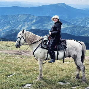 После такого довольно строгого шага в гору я помню, как переживала перед галопом, что оставлю позвоночник в штанах, но оказался конь удивительно мягкий и уверенный на ходах. При этом иногда кажется, что он суетится, нет, он просто быстро идет, качает головой шустро и семенит иногда. Это очень мило