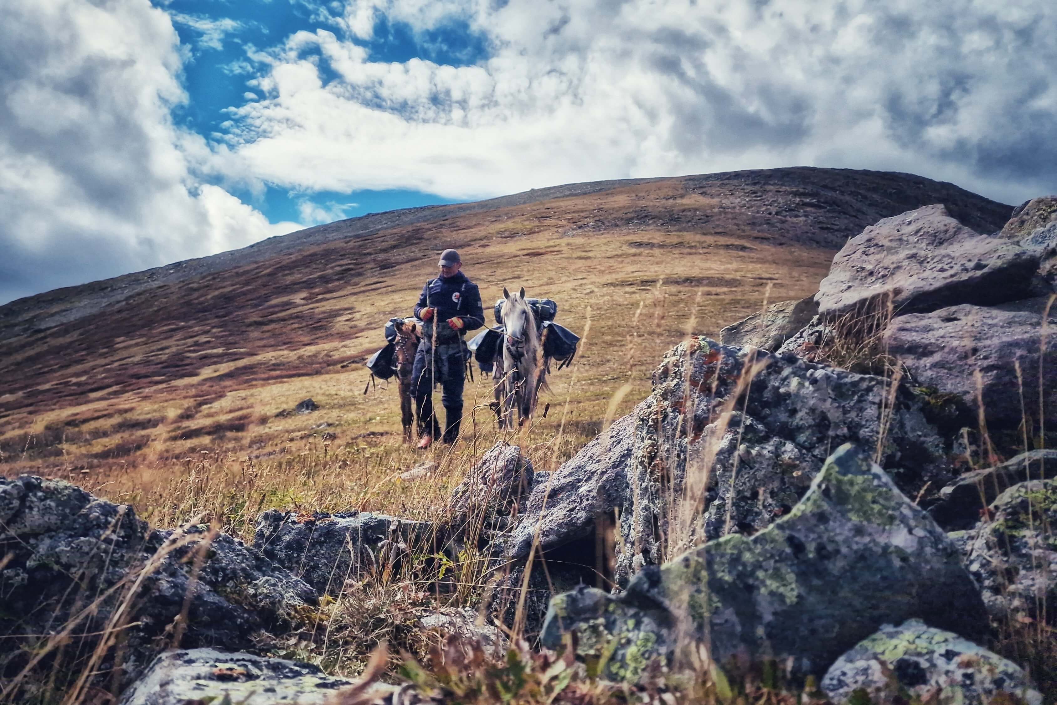 Your first horseback riding day will start early in the morning. The adventures already await you but so many things still need to be settled. Have a nourishing breakfast with hot tea or better coffee, take a deep breath and just for a few minutes observe the fuss around: tourists packing their luggage, guides saddling up horses, people moving there and back. Now it’s your time to take an active part in it! The guides will help you to put your luggage into special waterproof saddle bags that locals call “archimak” and then saddle up the horse that was chosen for you yesterday. We recommend to get acquainted with your horse that will become your good friend for the whole trip. No apples or carrots, please Bread with salt is the best treat for Altai horses and the best way to make friends. And finally when all the preparations are done the guides shout: “Mount up!” and the trip begins.
