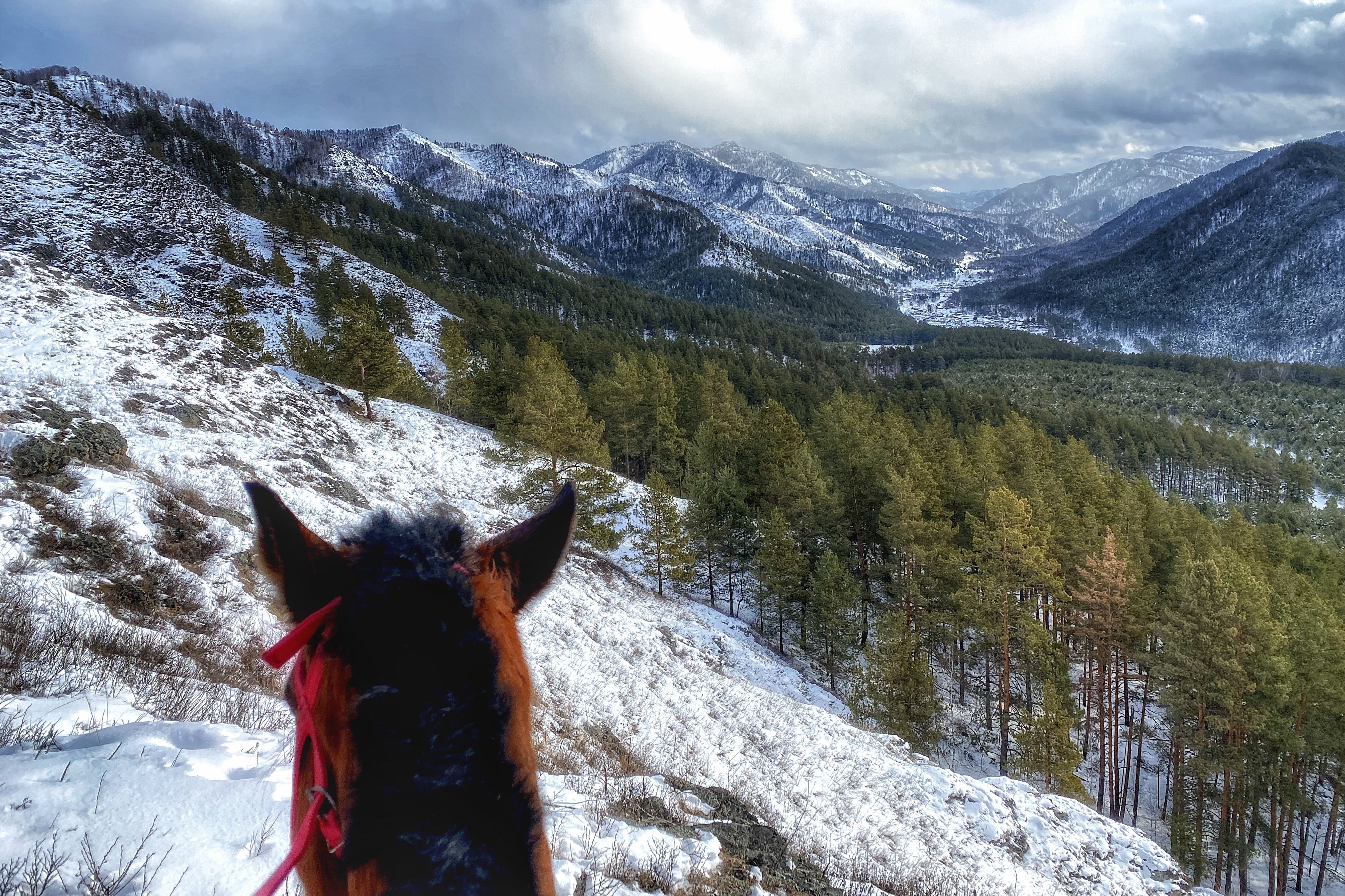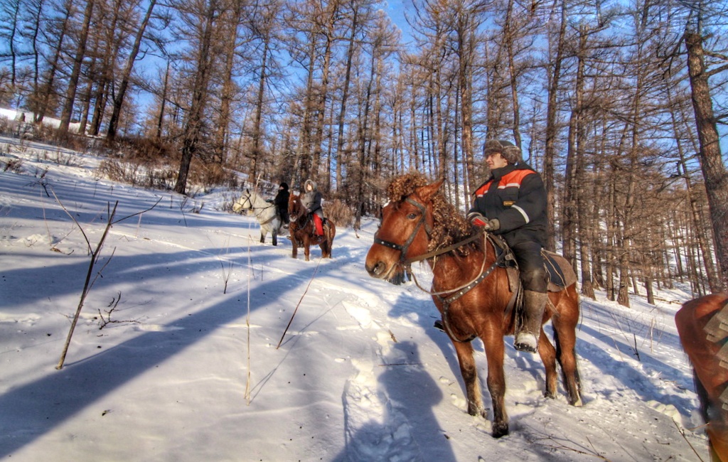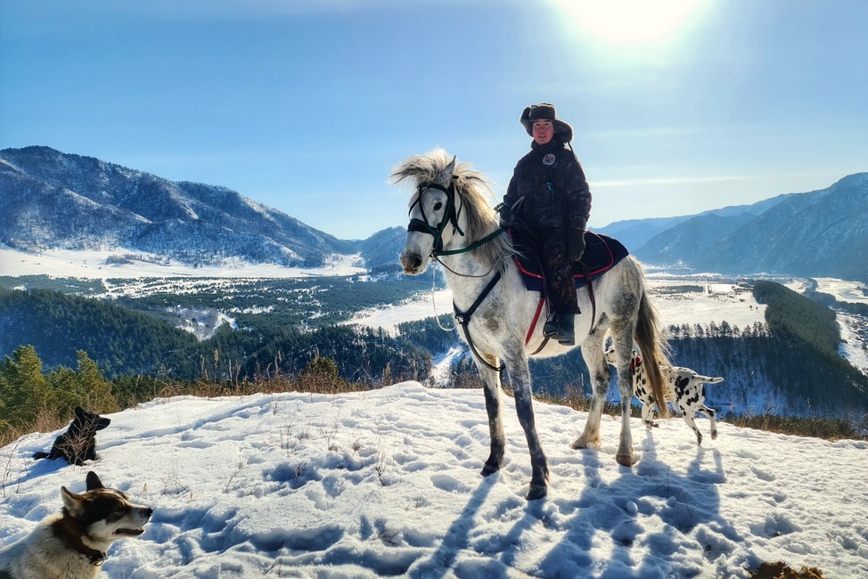 Le temps pour une chasse photo animalière ! Cela ressemble à une battue traditionnelle : les chevaux sont attachés, les chasseurs se mettent à l’affût tandis que les guides font les rabatteurs. Après une telle chasse, rares sont ceux qui repartent bredouille : vous allez voir des cerfs élaphes – la légende de la Sibérie Occidentale – ou encore un chevreuil. Vous vous sentirez comme un vrai chasseur altaïen ! Choisissez de passer par une cascade de glace, ou encore fiez-vous à votre guide qui vous montrera les endroits les plus pittoresques. Pour la nuit il est prévu de rester dans le village de Verkh-Anos.