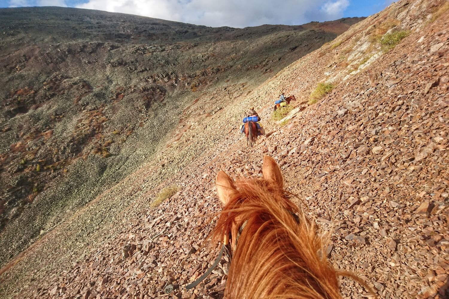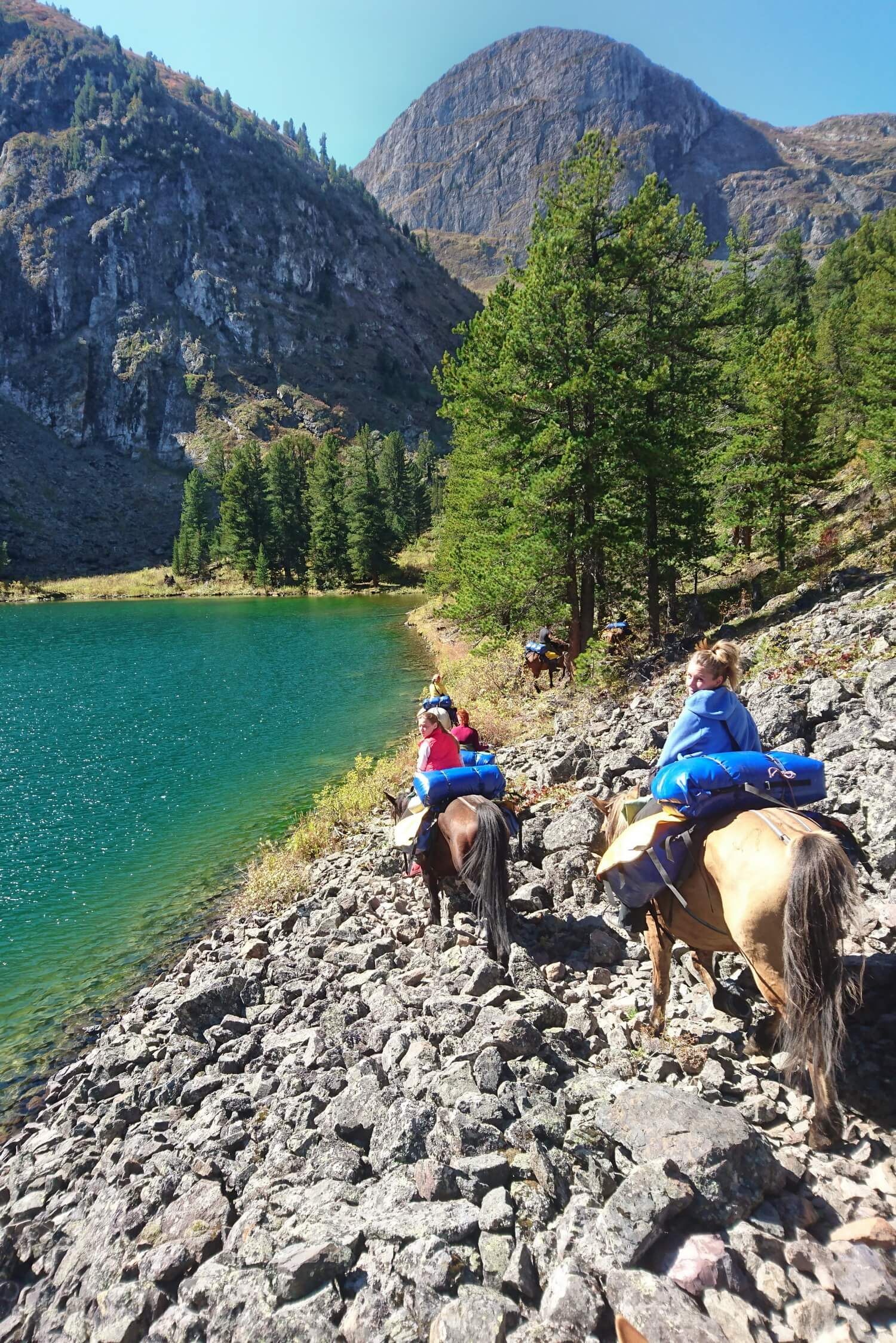 В течение маршрута Ваша лошадь везет не только Вас и ваши вещи, но и продукты, распределенные на всех участников группы. Это может доставить дискомфорт во время конных переходов. Мы предлагаем вариант заказа дополнительных лошадей на группу для перевоза продуктов и вещей или можем предоставить лошадь лично для Вас!
