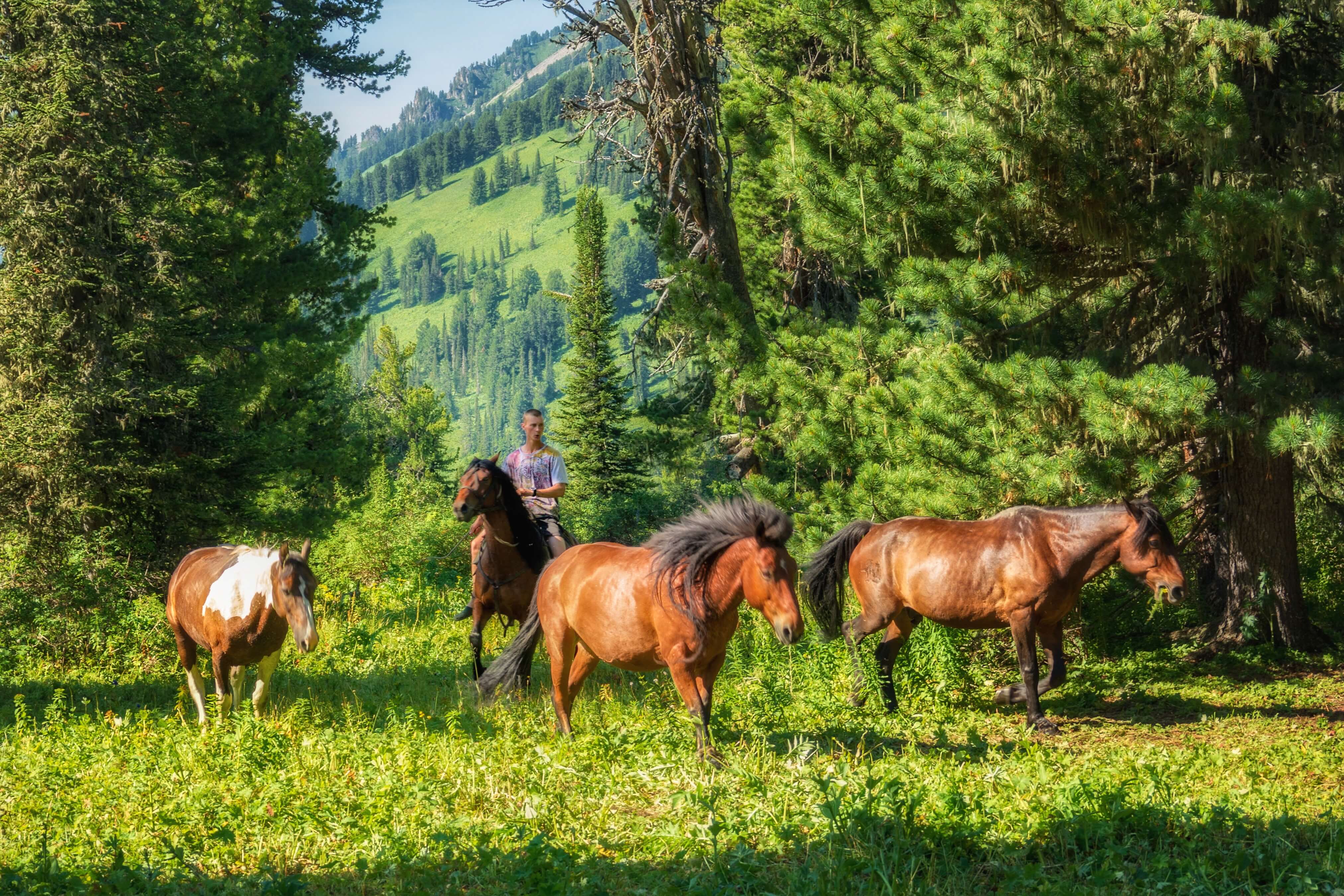 Конный маршрут создан специально для опытных путешественников. Он совмещает в себе все направления конных туров от «Маяк Алтая» — вы сможете увидеть и далекое озеро Уймень с окружающими его водопадами и легендарные Каракольские озера.