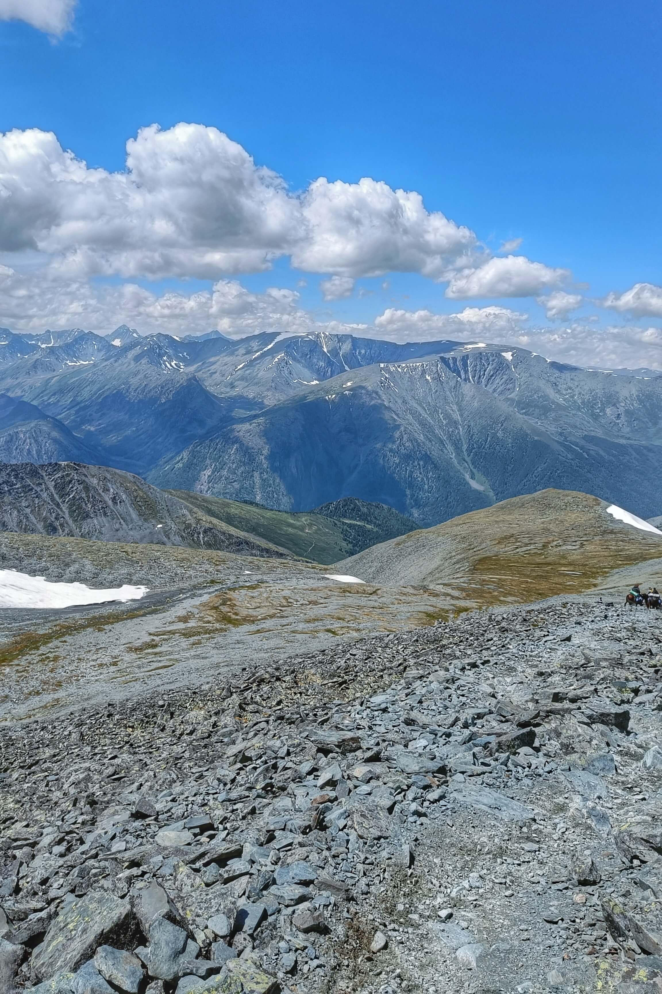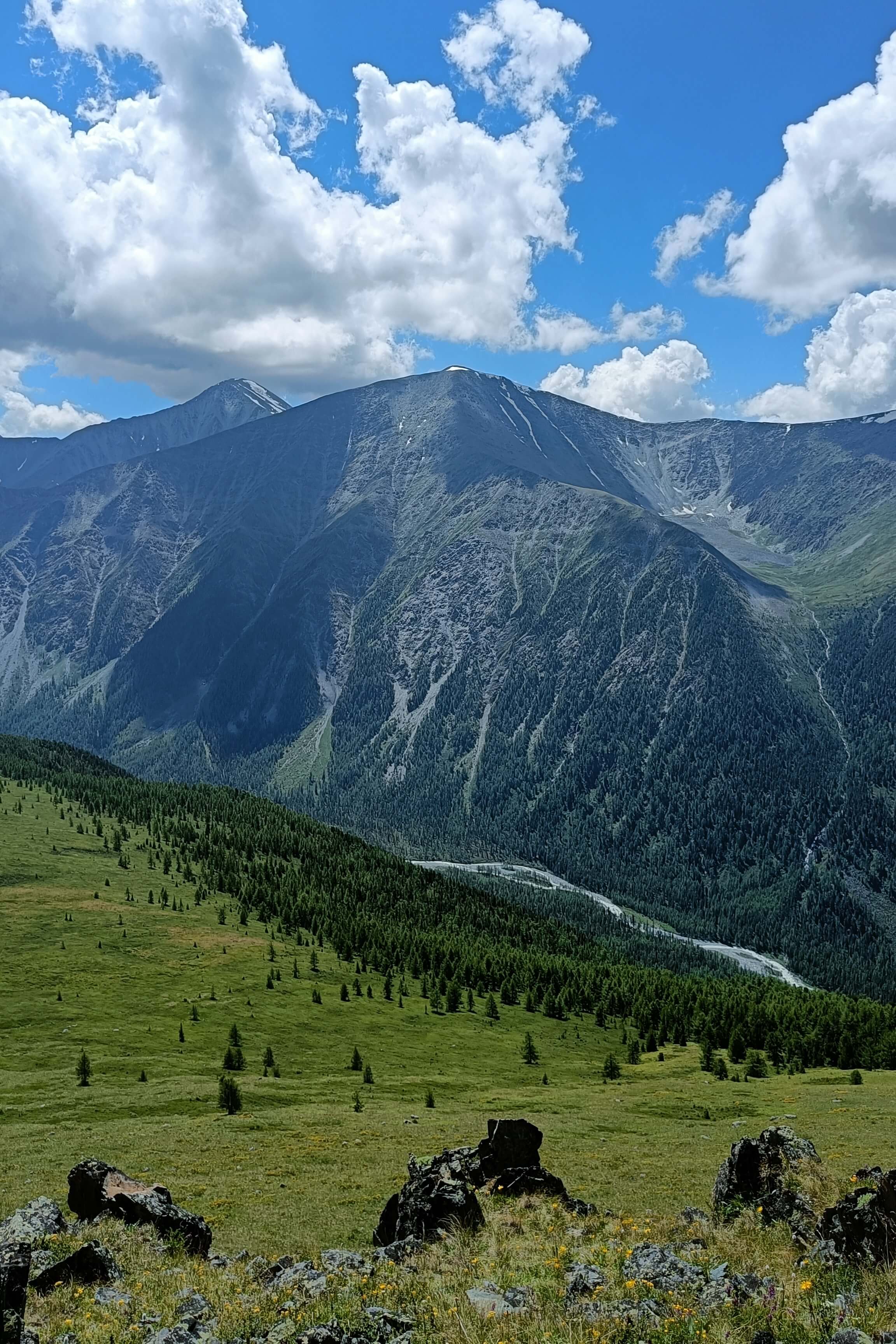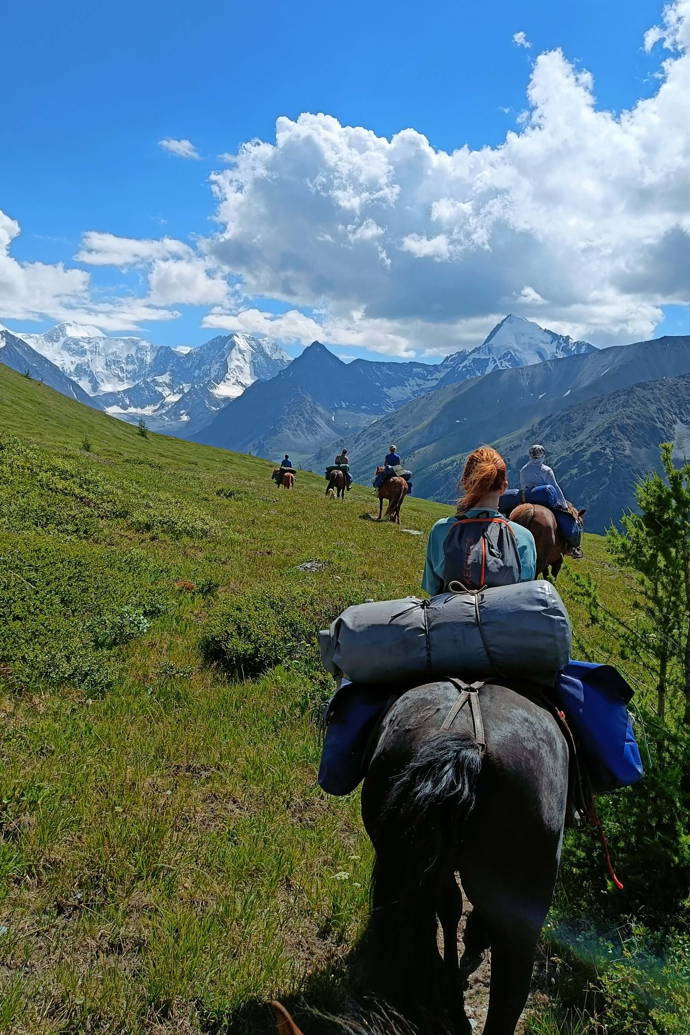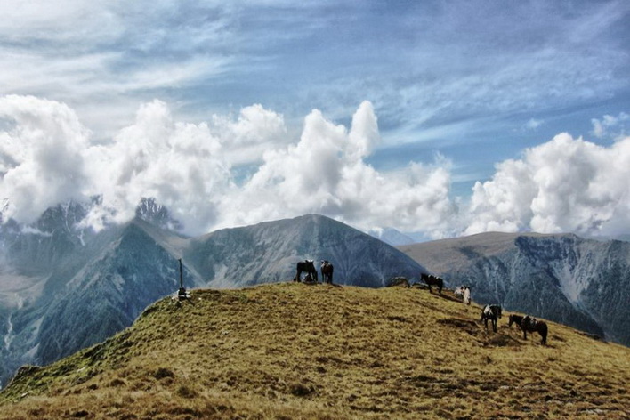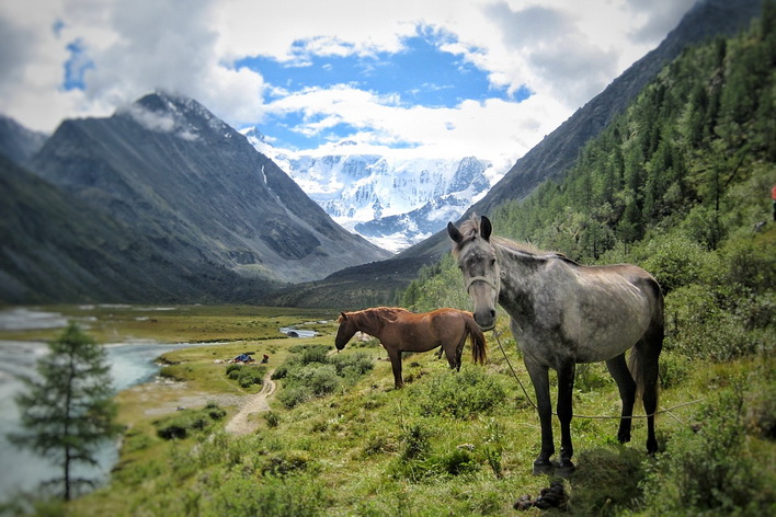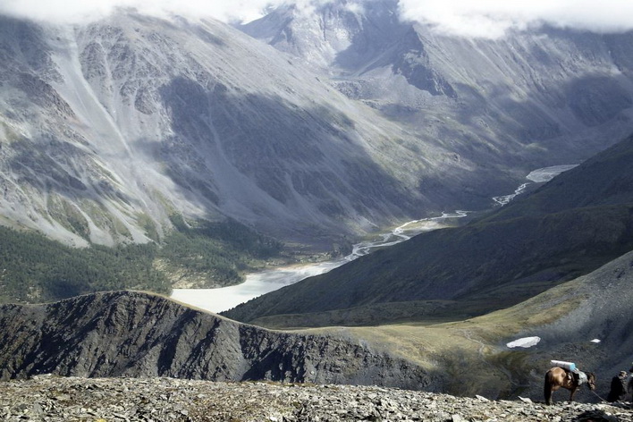 Конная часть этого дня будет длиться около пяти часов и сразу начнется с достаточно серьезного перевала под названием Кузуяк, высота котрого сотавляет около 1500 метров над уровнем моря. Отсюда село Тюнгур будет видно как на ладони. Спустившись и пройдя вдоль реки Ак-Кем вновь подъем к кедровому лесу и живописным полям. Здесь уже можно разглядеть красавицу Белуху и "молочное" озеро Ак-Кем. Привал сегодня у реки Тухман, берущей свое начало от истока у одноименных скал.