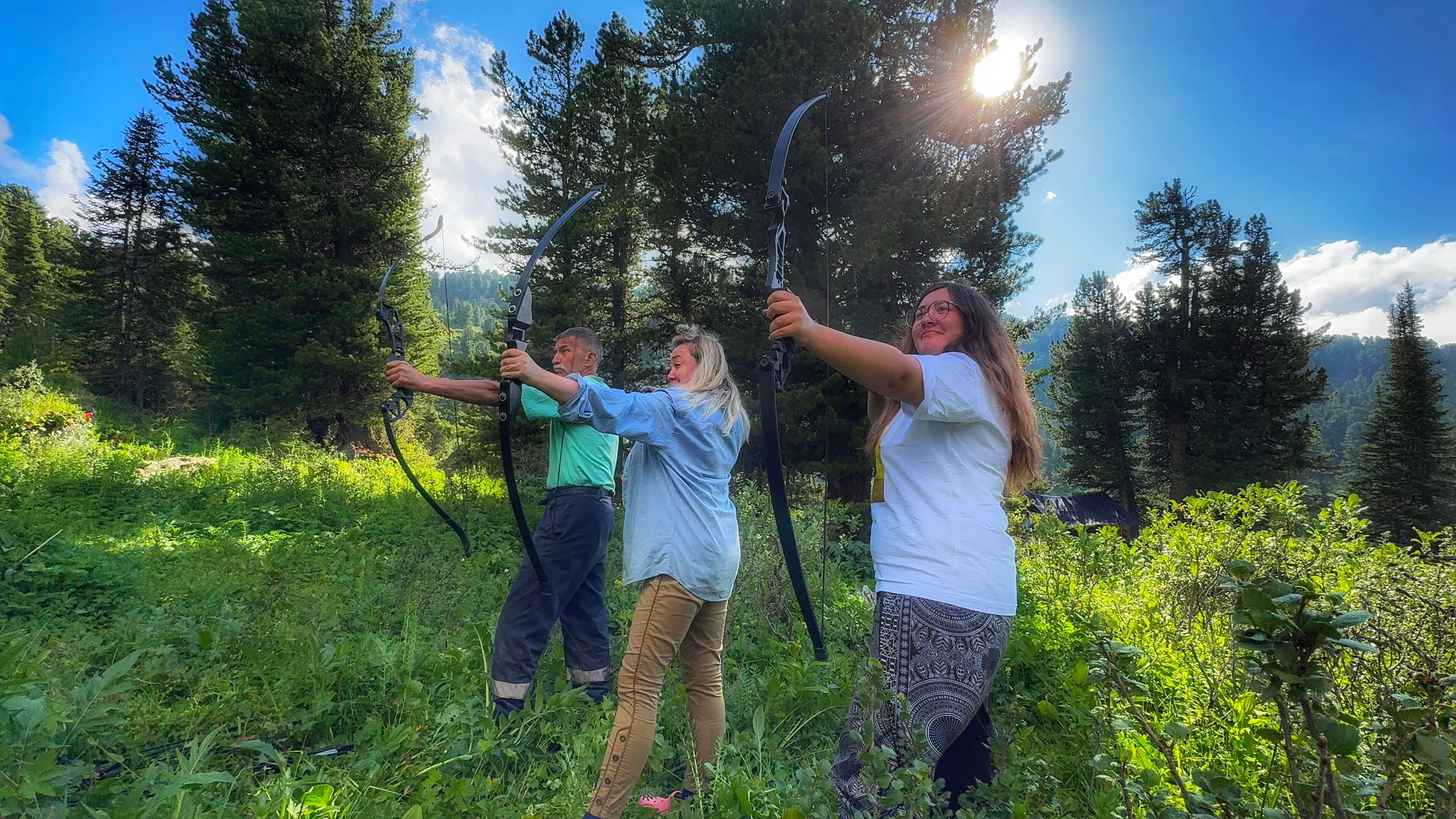 Вернувшись на стоянку, обедаем и продолжаем день тренировкой по стрельбе из лука. Исторически, стрельба из лука использовалась на Алтае для охоты и даже рыбалки и является по сей день национальной традицией - ни один праздник не проходит без этого мероприятия. Наша миссия - познакомить вас с этим особенным видом спорта, а сделать это в условиях диких гор - особое удовольствие и для нас, и для вас.
