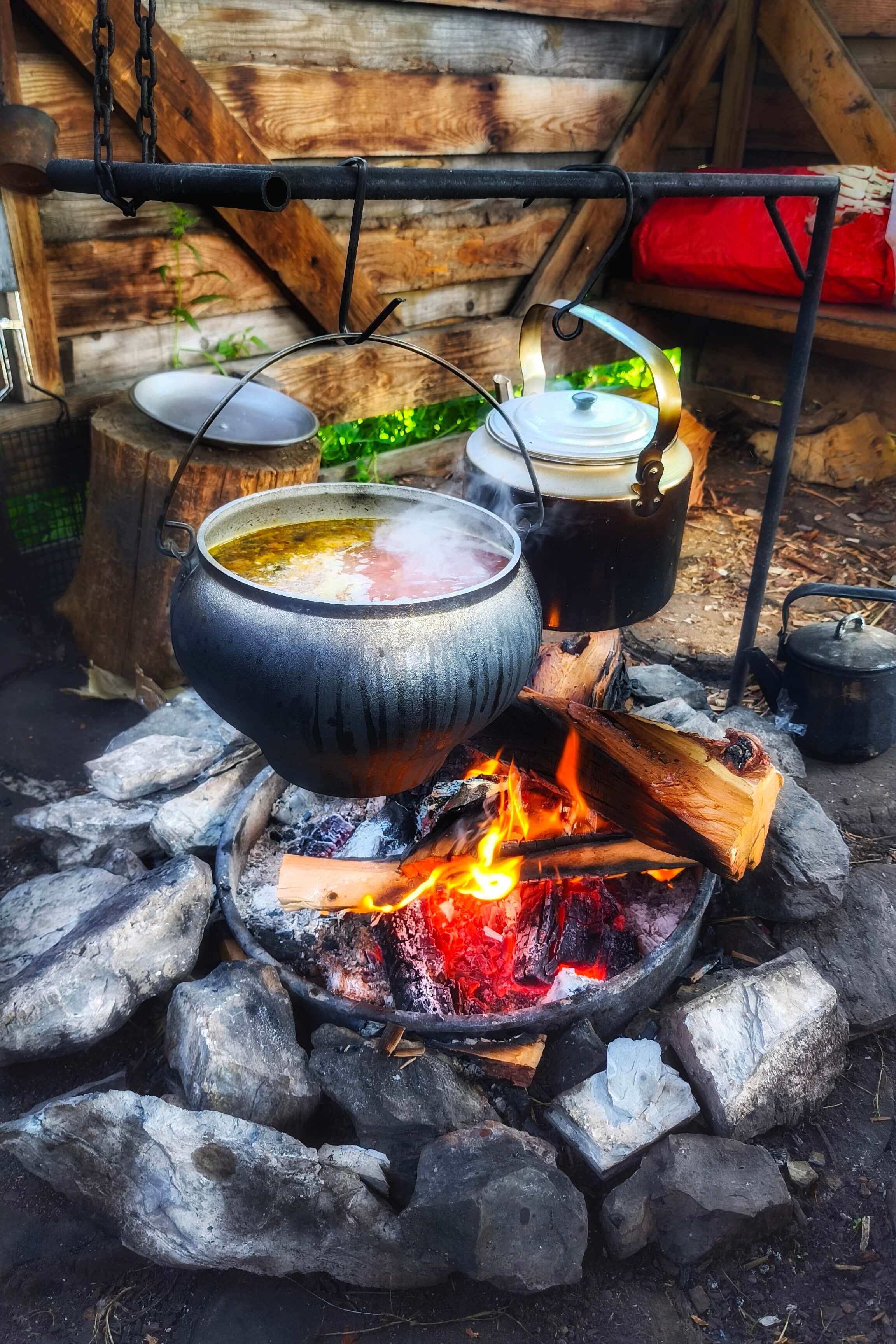 Инструкторы разбудят вас к завтраку в 8 утра. Сразу немного информации по питанию: приготовление пищи будет осуществляться на костре, что добавит особой атмосферы и вкусовых качеств нашему меню, которое, к слову, состоит из настоящих походных рецептов, переданных нам охотниками и истинными таежниками.