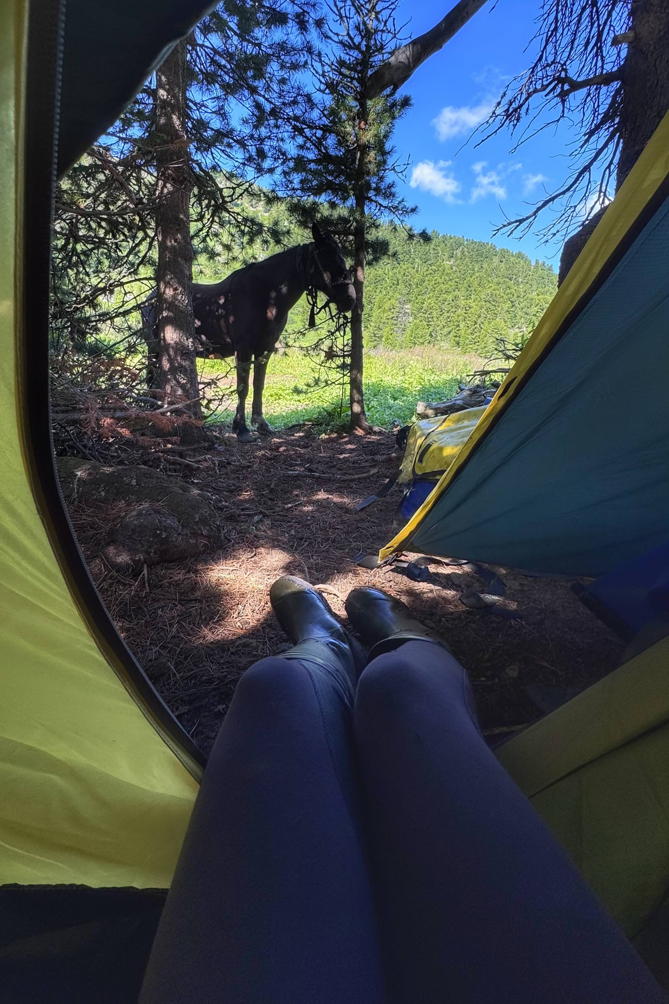 Остаемся на нашей уютной стоянке в урочище Уул еще на день, а лошадкам устраиваем выходной. Неспешно просыпаемся, завтракаем, слушаем тишину, впитываем утреннее алтайское солнышко и собираемся на прогулку. Сегодня нам предстоит дойти до озеро Вероника, расположенного в двух километрах от стоянки. Идем налегке, но не забываем взять с собой воду.