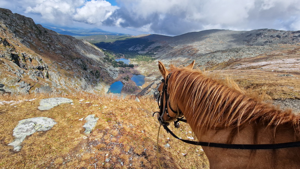 Далее тропа конного тура уводит нас вниз с перевала и полный вперед до уже знакомой стоянки на Кылайской гриве.