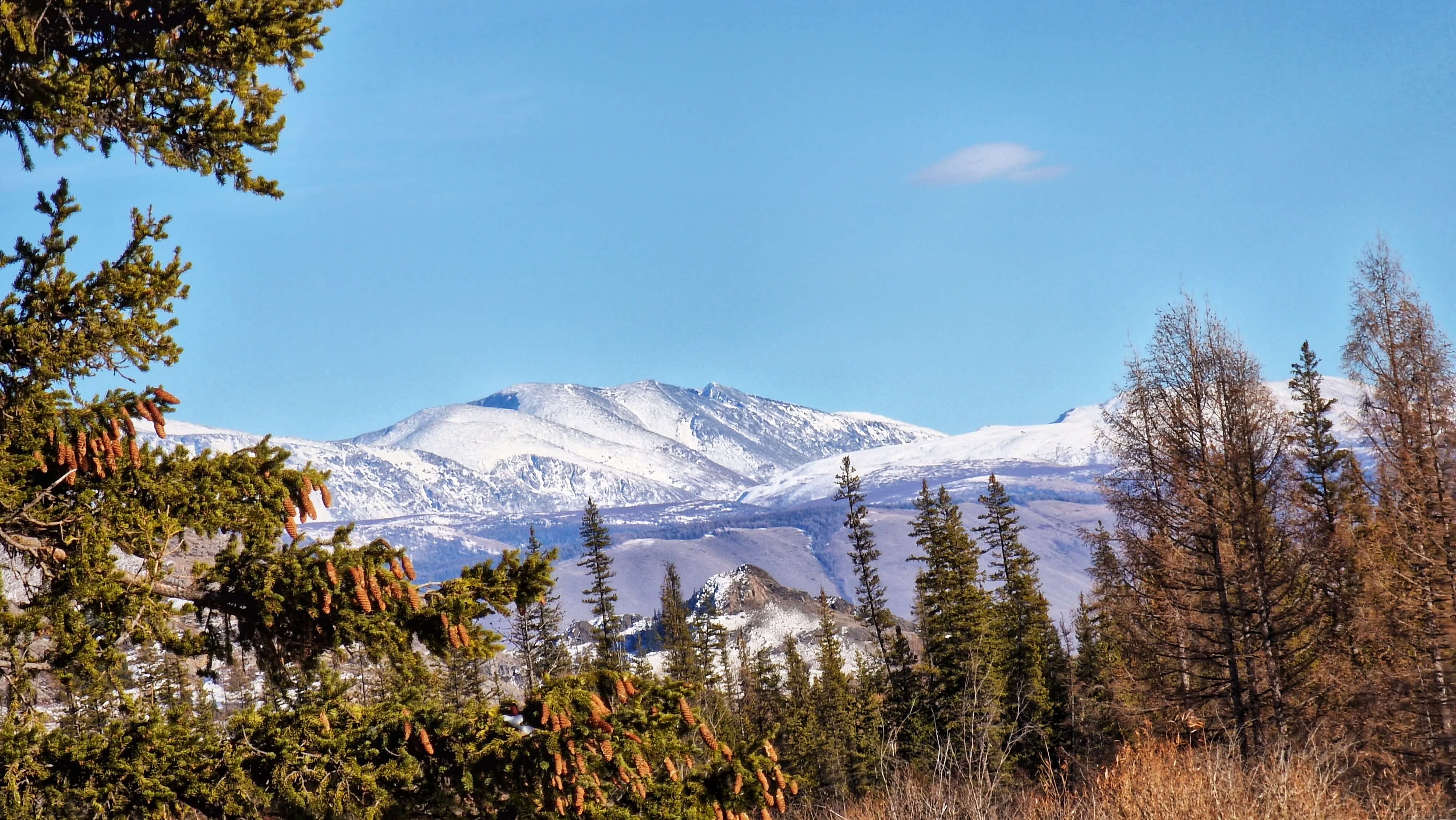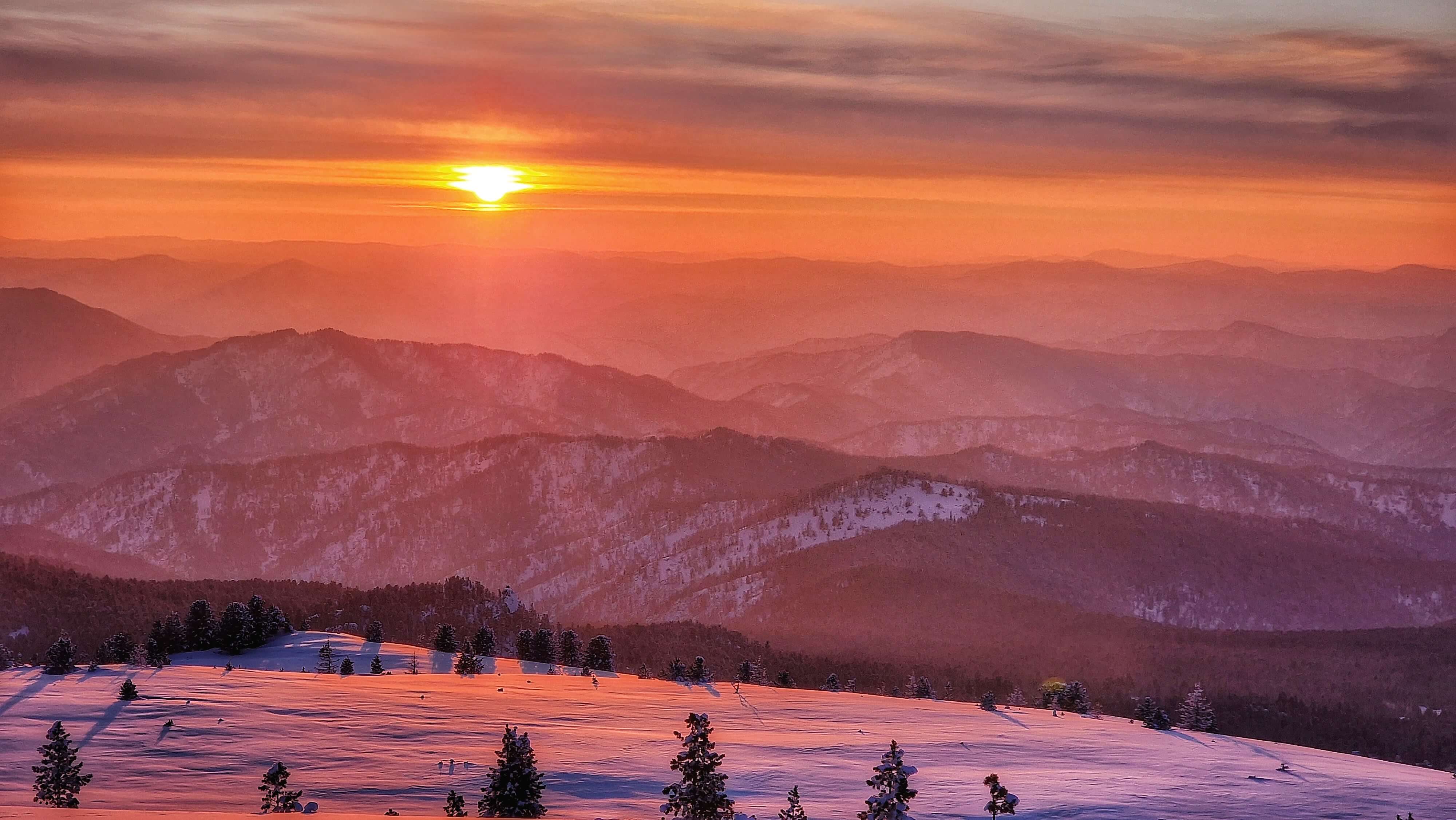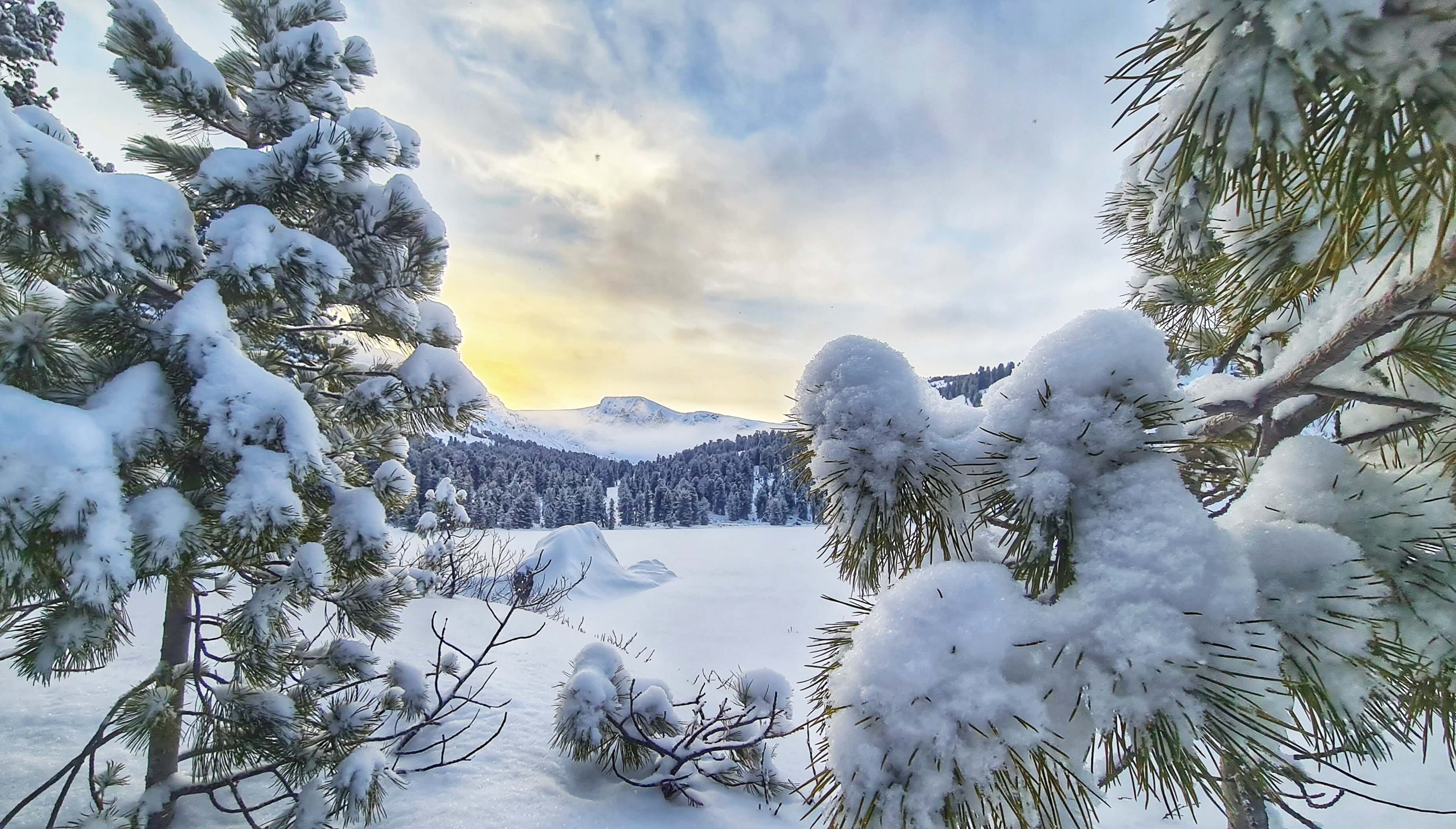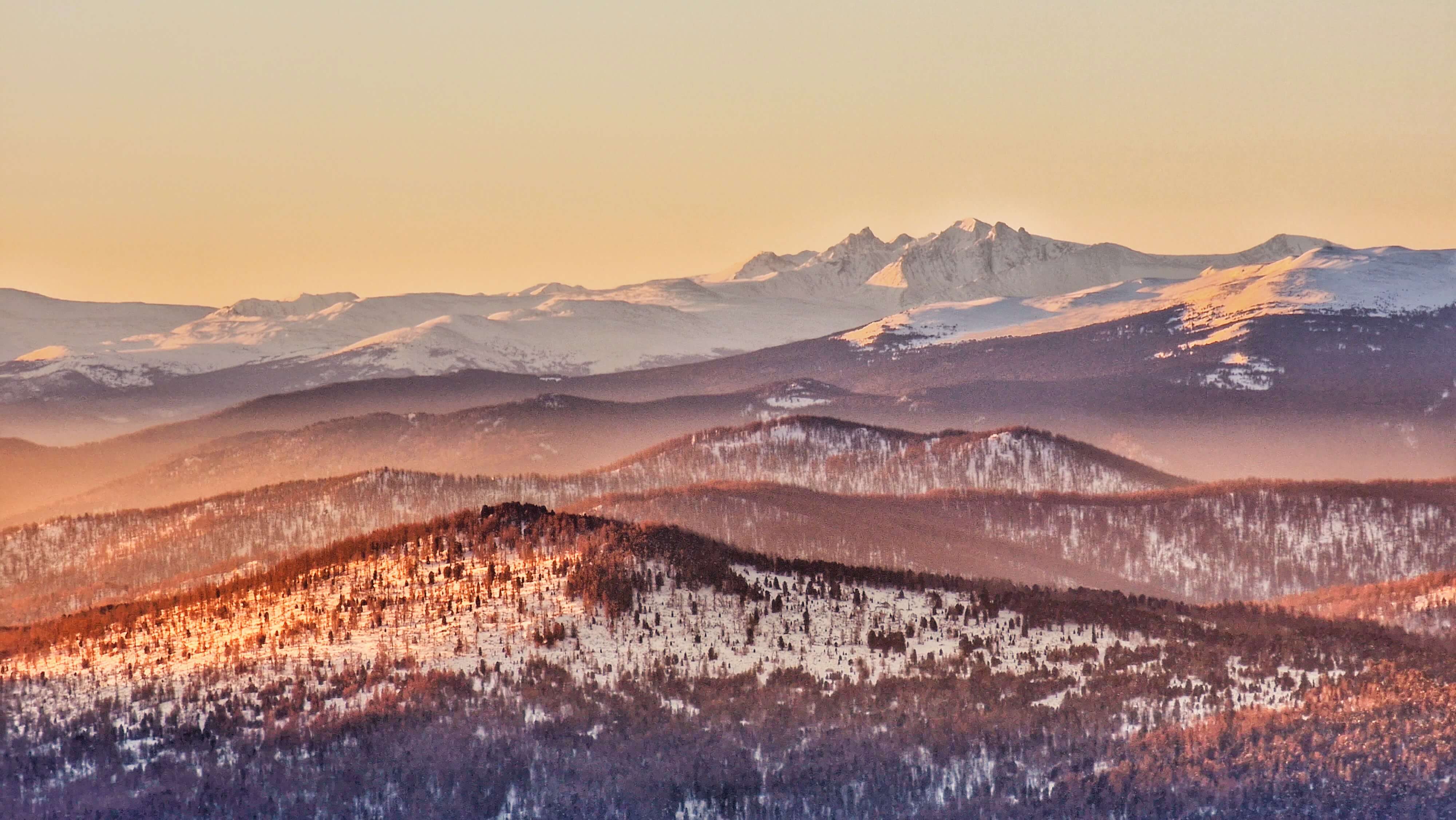Трасса маршрута постепенно усложняется - нам необходимо преодолеть предгорные заснеженные поля, чтобы оказаться на финишной прямой - Кылайской горной гряде. Сосны и береза сменяются густым кедрачом, воздух становится ощутимо морознее, но суше, а виды грандиознее. Выезжаем снова на лесную дорогу, с которой открывается великолепная перспектива на горные хребты. Наши бывалые туристы эту картину часто называют "Море тайги". А почему бы и да?