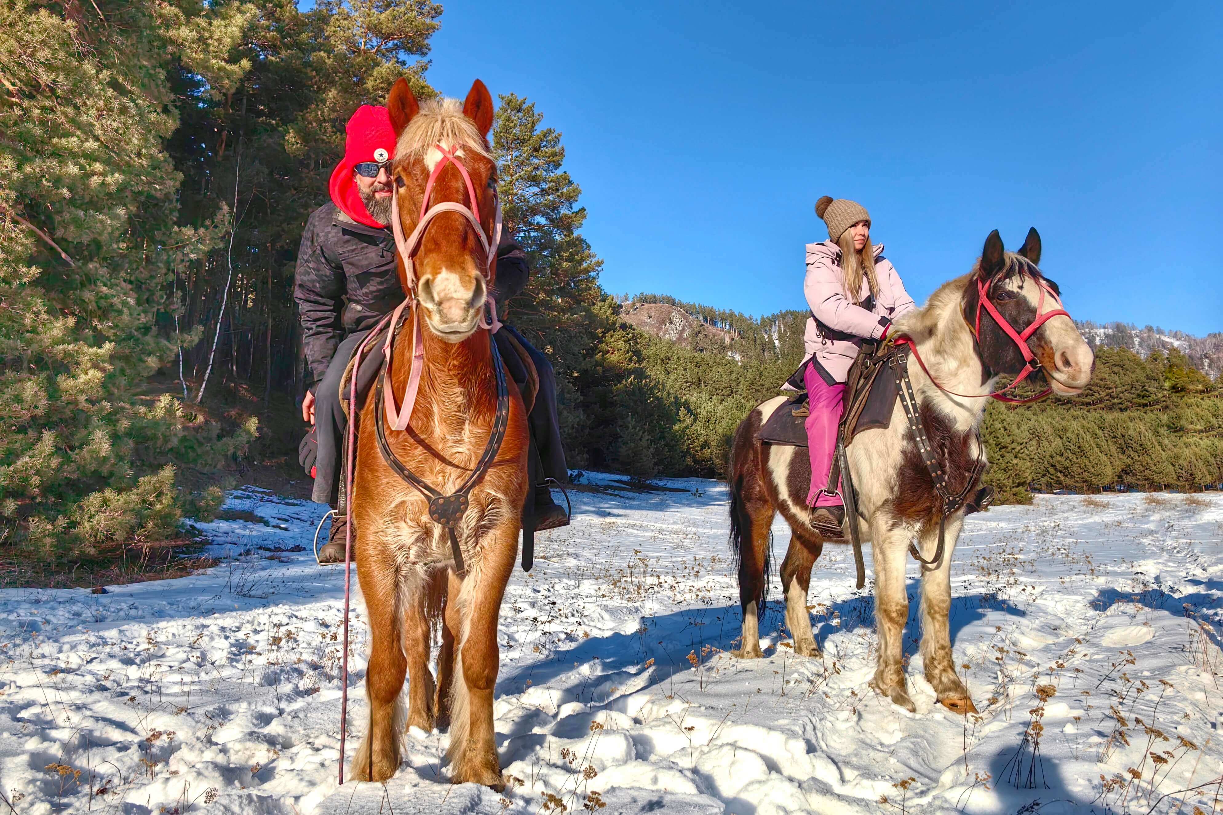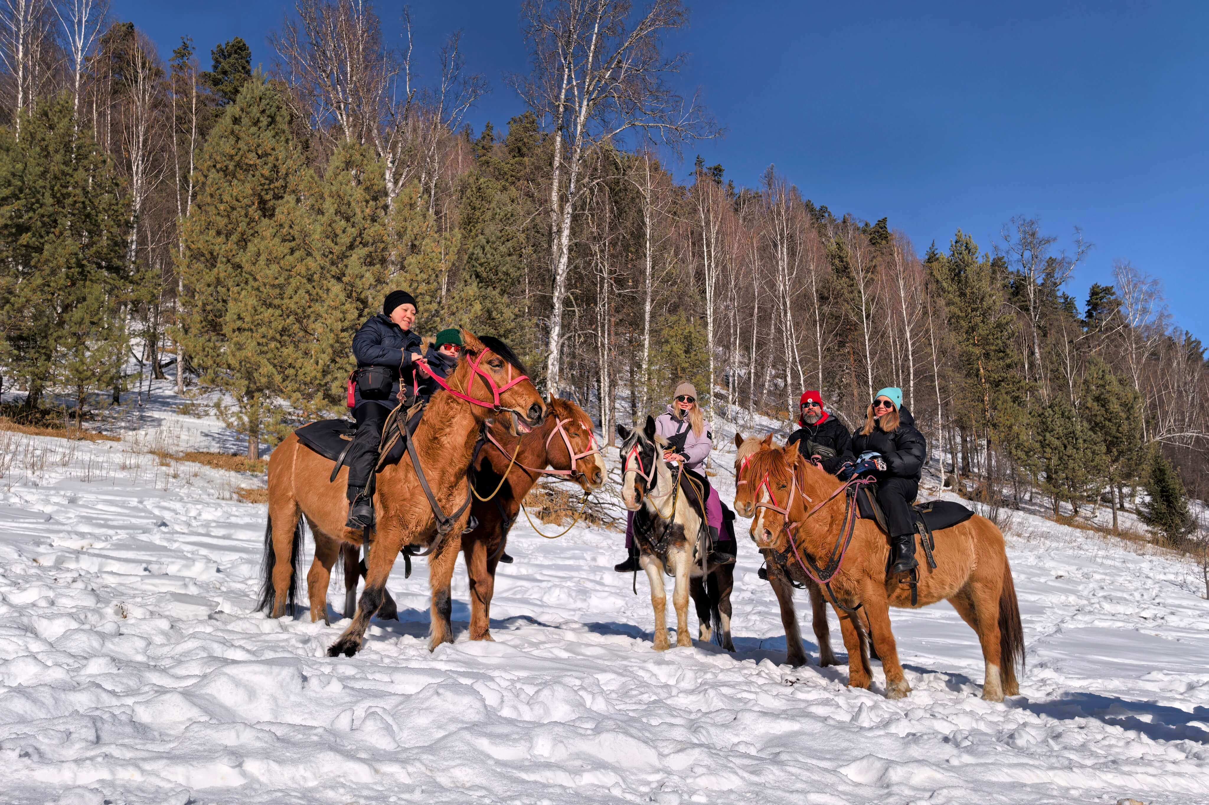 Предновогоднее утро! Сегодня Вас ожидает конная прогулка на легендарные Голубые озера.