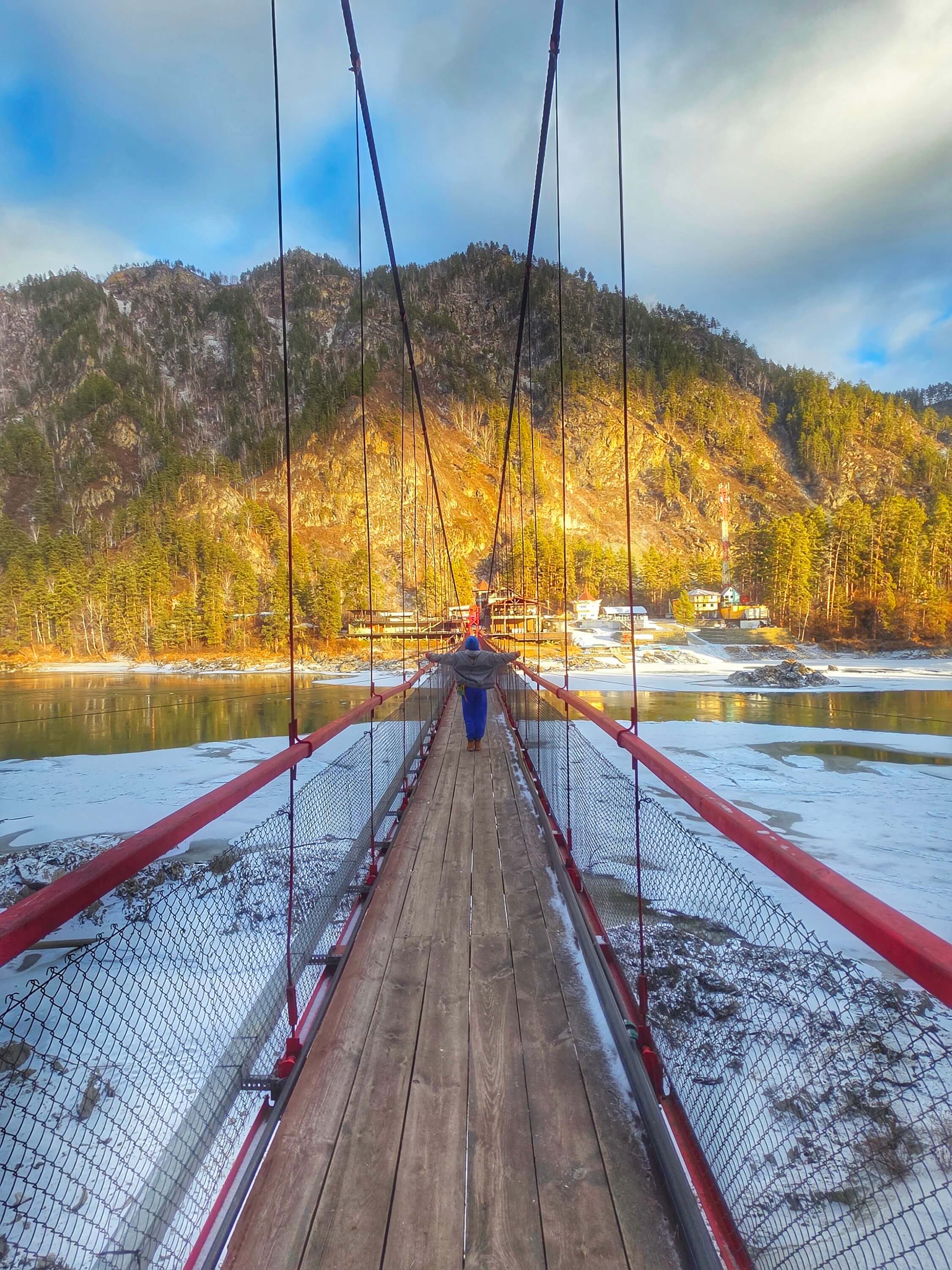 Сегодня неспешно начинаем наше путешествие в 11 утра после завтрака, заботливо приготовленного инструктором-домовым. Гид на автомобиле Nissan Patrol заберет вас со Штаба и свое знакомство с чудесами Чемальского тракта группа начнет от Еландинских порогов реки Катунь. Это красивейшее место на участке Средней Катуни, которое является препятствием 3 категории сложности для любителей рафтинга. Зимой же тут можно наблюдать бирюзовый лёд, сравнимый с льдом Байкала. Кроме того, место отличается необыкновенной красотой окружающих гор - будто перья беркута устремляются вверх заснеженные скалы! Следующим пунктом нашей программы будет посещение Ороктойского моста, стоящего над самым узким, но, в то же время, глубоким местом Катуни. По пути вы услышите самые особенные легенда Алтая о нашей красавице и сможете остановиться в живописных местах по запросу - для фотосъемки. От Ороктойского моста движемся в обратный путь, но это не конец, друзья! Полный вперед к водопаду (ледопаду) Чечкыш и одноименной смотровой площадке, но, чтобы увидеть эти знаменательные места придется преодолеть достаточно крутой подъем в гору! Поверьте - оно того стоит! Только представьте: огромная глыба скалы, нависающая над ущельем, в котором все еще звучат переливы воды под толщей льда, укрывающего водопад… Тишина, спокойствие, только вы и Алтай. Продолжаем путешествие еще одной локацией – смотровой Толгоёк. Это место уникально тем, что объединяет в себе благоустройство территории (здесь оборудованы фотозоны, качели, лавочки) с атмосферой тишины, и первозданности Алтая. Чудесное завершение дня на закатном солнце, поверьте!