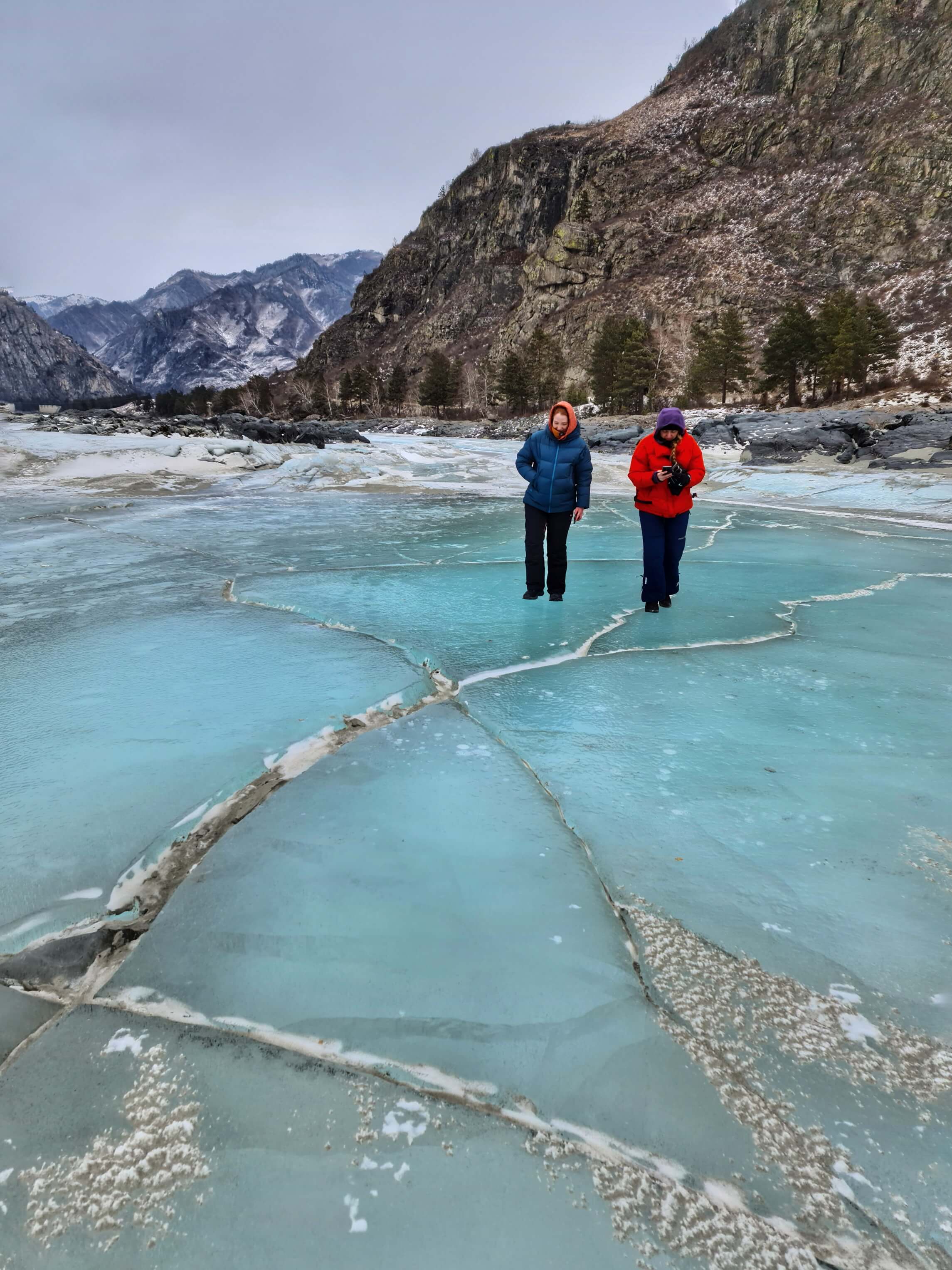 Дорога перед нашим Nissan Patrol лежит непростая: через село Аскат, далее через сосновый лес по бездорожью до самих Голубых озер. Стоит отметить, что озера — явление временное: они открываются нашему взору только в зимнее время, когда река Катунь уносит свои воды с этого великолепного по своей красоте места, оставляя два озера небесно-голубого цвета. Прогулку можно разнообразить пикником и пребыванием в жаркой походной бане, а также, устроить фотосессию на берегу - у вас будет столько времени, сколько потребуется, чтобы впитать красоты зимнего Алтая!